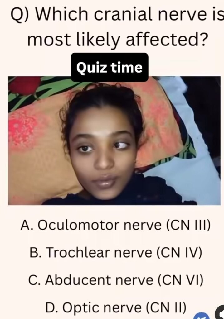 ✅ Correct Answer: C) Abducent nerve (CN VI)